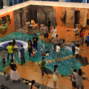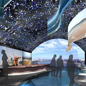 地面互動(dòng)投影系統(tǒng)采用懸掛在頂部的投影設(shè)備把影像效果投射到地面,當(dāng)參訪者走至投影區(qū)域時(shí),通過(guò)系統(tǒng)識(shí)別,參訪者可以直接使用雙腳或動(dòng)作與投影幕上的虛擬場(chǎng)景進(jìn)行交互,各種 ……