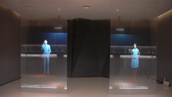 幻影成像系統(tǒng)也稱虛擬成像是基于“實(shí)景造型”和“幻影”的光學(xué)成像結(jié)合,將所拍攝的影像(人、物)投射到布景箱中的主體模型景觀中,演示故事的發(fā)展過(guò)程。繪聲繪色,虛幻莫測(cè) ……
